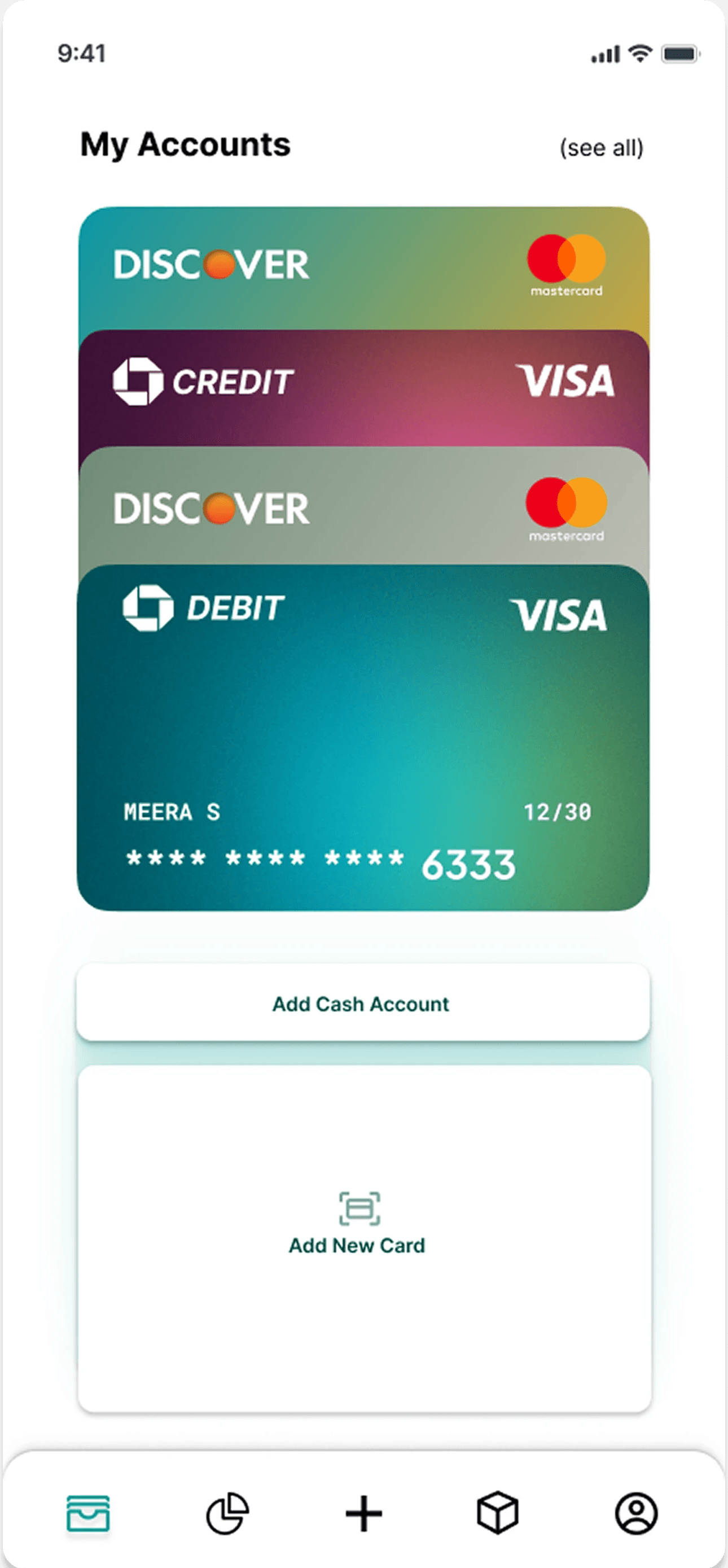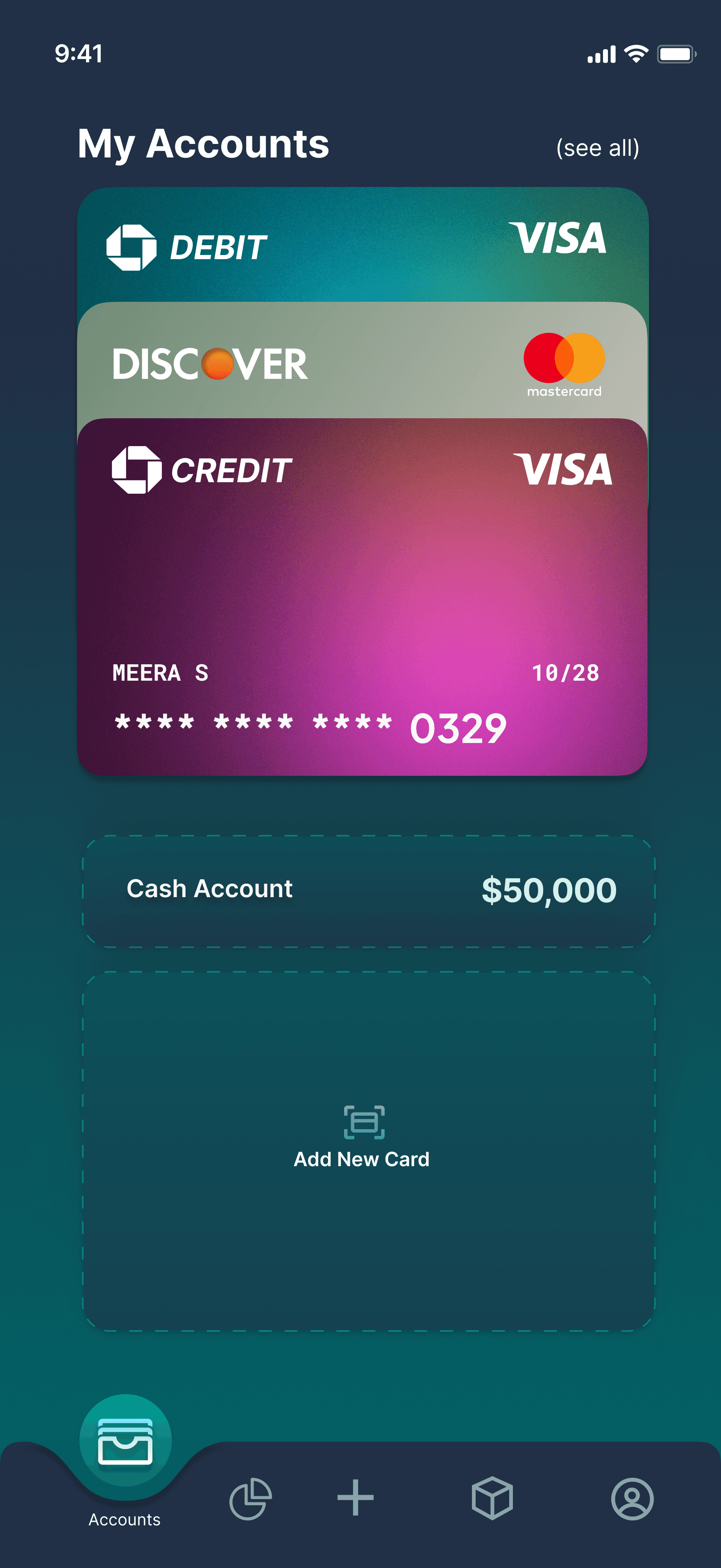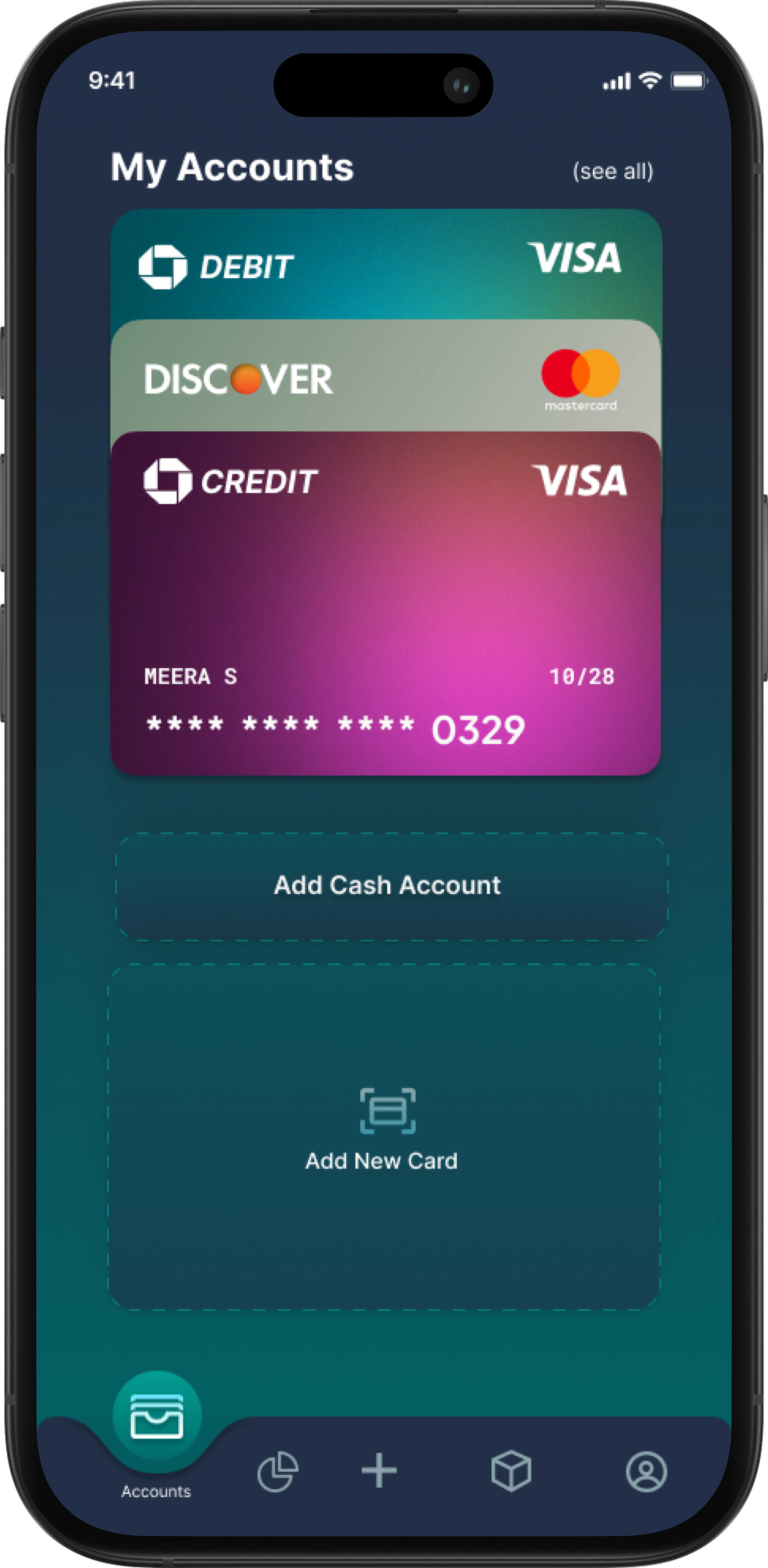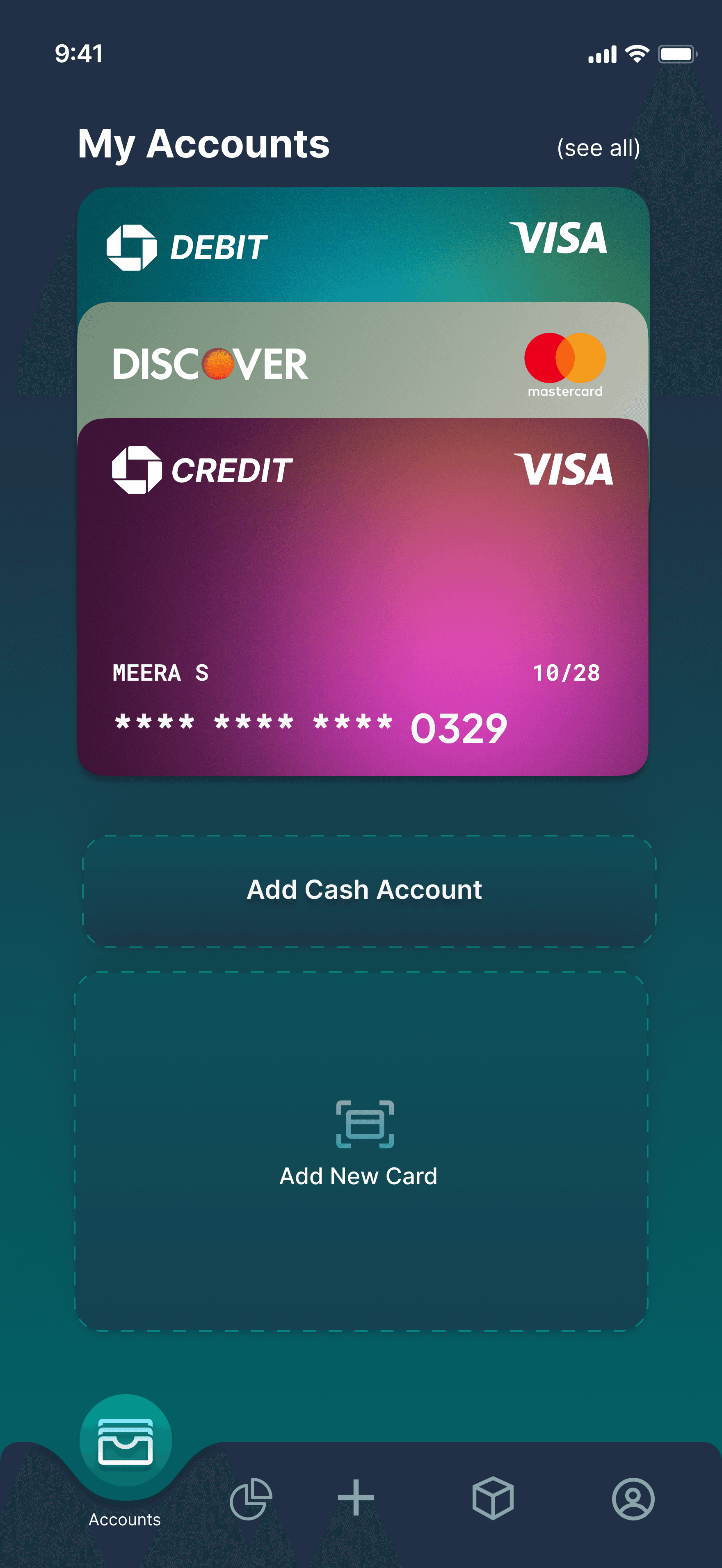Add Cash account & Add Card