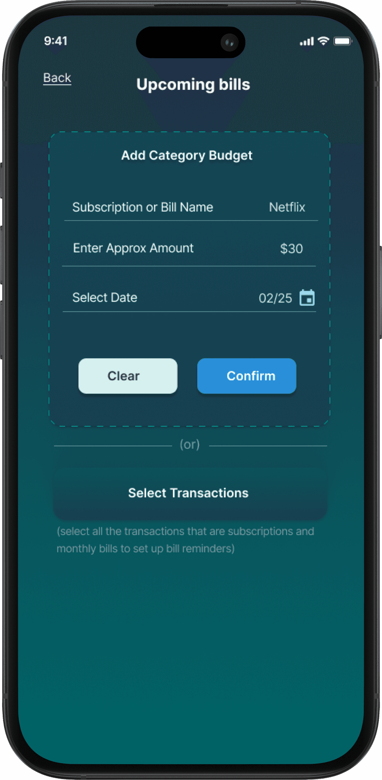 Users can scan receipts, and the app will auto-extract details and prompt them to select a spending category.